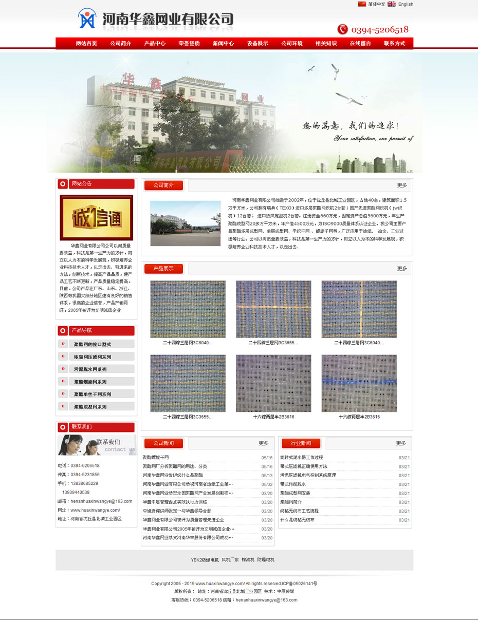案例介紹:河南華鑫網(wǎng)業(yè)有限公司始建于2002年,位于沈丘縣北城工業(yè)園區(qū),占地40畝,建筑面積1.5萬平方米,公司擁有瑞典(TEXO)進(jìn)口多層聚酯網(wǎng)織機(jī)2臺套;國產(chǎn)先進(jìn)聚酯網(wǎng)織機(jī)(jw織機(jī))12臺套;進(jìn)口熱風(fēng)定型機(jī)2臺套。注冊資金660萬元,固定資產(chǎn)總值5600萬元,年生產(chǎn)聚酯成型網(wǎng)20多萬平方米,年產(chǎn)值4500萬元,為ISO9000質(zhì)量體系認(rèn)證企業(yè)。我公司主要產(chǎn)品聚酯多層成型網(wǎng)、單層成型網(wǎng)、平織干網(wǎng)、螺旋干網(wǎng)等,廣泛應(yīng)用于造紙、冶金、工業(yè)過濾等行業(yè)。