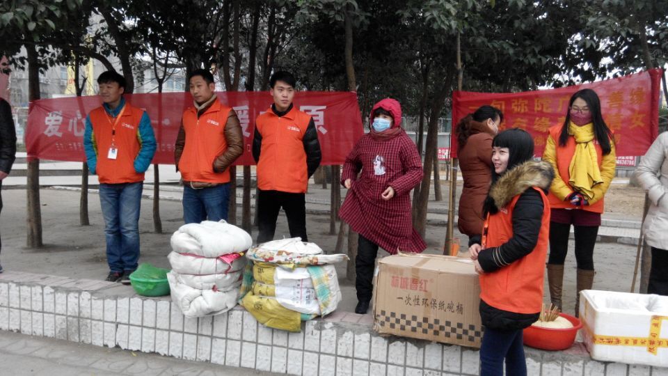 在這次的愛心公益活動中,我們的小伙伴身穿橙色的帶有58同城標識的衣服,懷揣一顆慈悲之心,積極配合著做好了準備工作,等著大家來領(lǐng)粥,過了一段時間,我們體會到大家的羞澀,選擇了主動出擊,我們的小伙伴們捧著一份份的熱粥遞到大家的手中,來來回回不知多少趟。最后,我們的真誠和熱心得到了大家的認可與信賴,他們由被動變?yōu)橹鲃,我們的粥也很快就分發(fā)完畢?粗蠹覙泛呛堑睾戎鵁釟怛v騰的粥,我們的小伙伴也露出了大大的笑臉。在活動的尾聲,我們的認真與虔誠讓大家在寒冷的冬天倍感溫暖,同時我們的善行也得到了大家的肯定與贊揚,傳遞了周口中原傳媒有限公司的正能量!