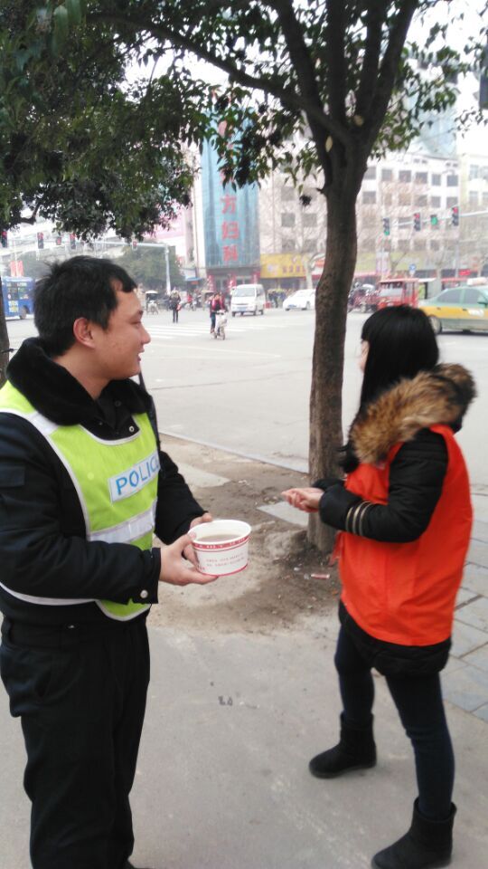 讓交警也感受到我們的小溫暖